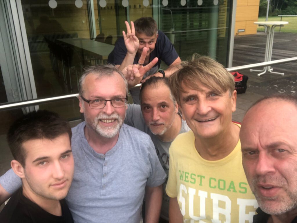 Martin the Hammer war in 2023 leider oftmals der Martin mit Rücken. Unser Knipser vor dem Herrn zeigte mit halb-normalen Rücken seine unnachahmlichen Pike-Schuss-Tore und rief standesgemäß 5 Minuten vor jedem Spielende, so sicher wie die Kuckucksuhr, die Hammer´sche Regel aus. Beschrieben in „Hammerspiel mit Hammertoren“ am 30.06.2023. Martin, lass dich zurechtbiegen, damit du uns auch in 2024 erfreust mit Pike-Toren und superschönen Photos auf unseren Festen!