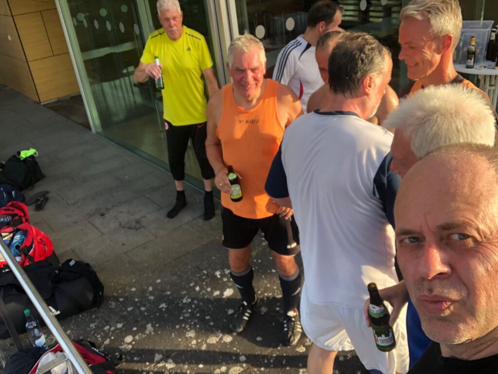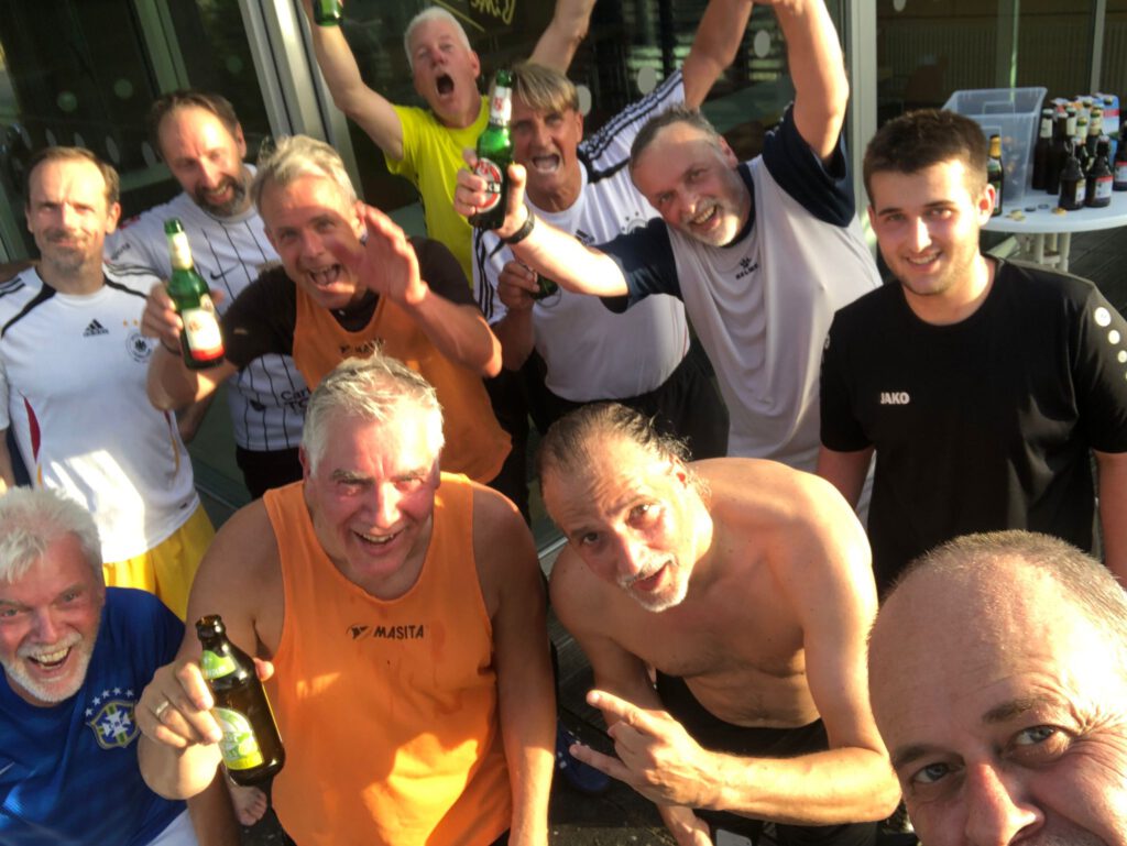 …. wirkliche Größe zeigt sich in Bescheidenheit und Zurückhaltung. Wer könnte damit gemeint sein? Er ist nicht nur ein herausragender Könner auf dem grünen Rasen, fast noch mehr hat er Talent zum Schreiben. Treffsicher auf dem Fußballfeld, mindestens genauso treffsicher seine Spiel- und Spieleranalysen, voller Humor und Einfühlungsvermögen. Woche für Woche warten wir alle, bis ….. endlich, der Bericht des letzten Freitagskicks als WhatsApp erscheint. Damit nicht genug, auch kulinarisch hat er uns schon einige Male verwöhnt, ist sofort dabei, wenn es um die Pflege unseres „Wembley-Rasens“ geht. Was immer zu tun auch ansteht, ER ist immer dabei. Dich mit wenigen Worten zu beschreiben, ist ein schwieriges Unterfangen. Aber Du …… PIERO, bist ein ganz besonderer Mensch und für die Freitagskicker der absolute Glücksfall. Ob als Doppelpassbruder oder Wortjongleur, wir freuen uns Dich in unseren Reihen zu haben. Die Allianz-Fußballer haben sich im Laufe der Jahre zu etwas ganz Besonderem entwickelt und daran hast Du großen Anteil. DANKE!