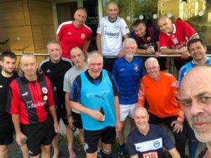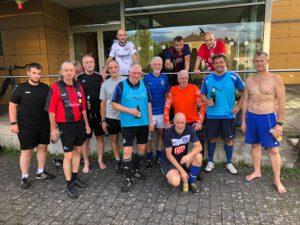 Aufgrund der phänomenal hohen Spieleranzahl überlegten die Freitagskicker anfänglich mit zwei Bällen zu spielen. Zu sehen war hochintensives Fußballspiel von zwei hochmotivierten Teams über die volle breite des Spielfeldes. Kurz vor dem Ende des Transferfensters zelebrierten die Freitagskicker nochmal ihr Können auf dem grünen Rasen in der Waldstraße. Trotz vieler Offerten von anderen Freizeitmannschaften, zeigten die Freitagskicker Moral und Anstand und ließen sich für alle Petrodollar dieser Welt nicht abwerben! Denn das Gefühl der Zugehörigkeit, das Vertrauen untereinander und der Stolz, gemeinsam seit vielen Jahren etwas Besonderes aufgebaut zu haben, sind unbezahlbar und für kein Geld der Welt zu kaufen. Team Bunt startete furios mit mehreren Treffen, starkem Zweikampfverhalten und sehenswerten Ballstaffetten in das Spiel. Hinten ließ die Defence rund um Arno kaum etwas anbrennen und vorne sorgten The Hammer, Himbeermann und Nicos für die Treffer. Nach der Halbzeitpause entdeckte Team Blau seine Stärken und ließ endlich das Bällchen gekonnt durch die eigenen Reihen laufen; orchestriert wurde das Spielgeschehen vom bärenstarken Uns Overath. Im Sturm sorgten Ilija und unser Kugelblitz DAM für sehenswerte Tore und siegten schließlich mit einem ultraknappen 7:6, wobei sich Team Bunt nicht wirklich an den Siegtreffer der Blauen erinnern konnte oder mochte.