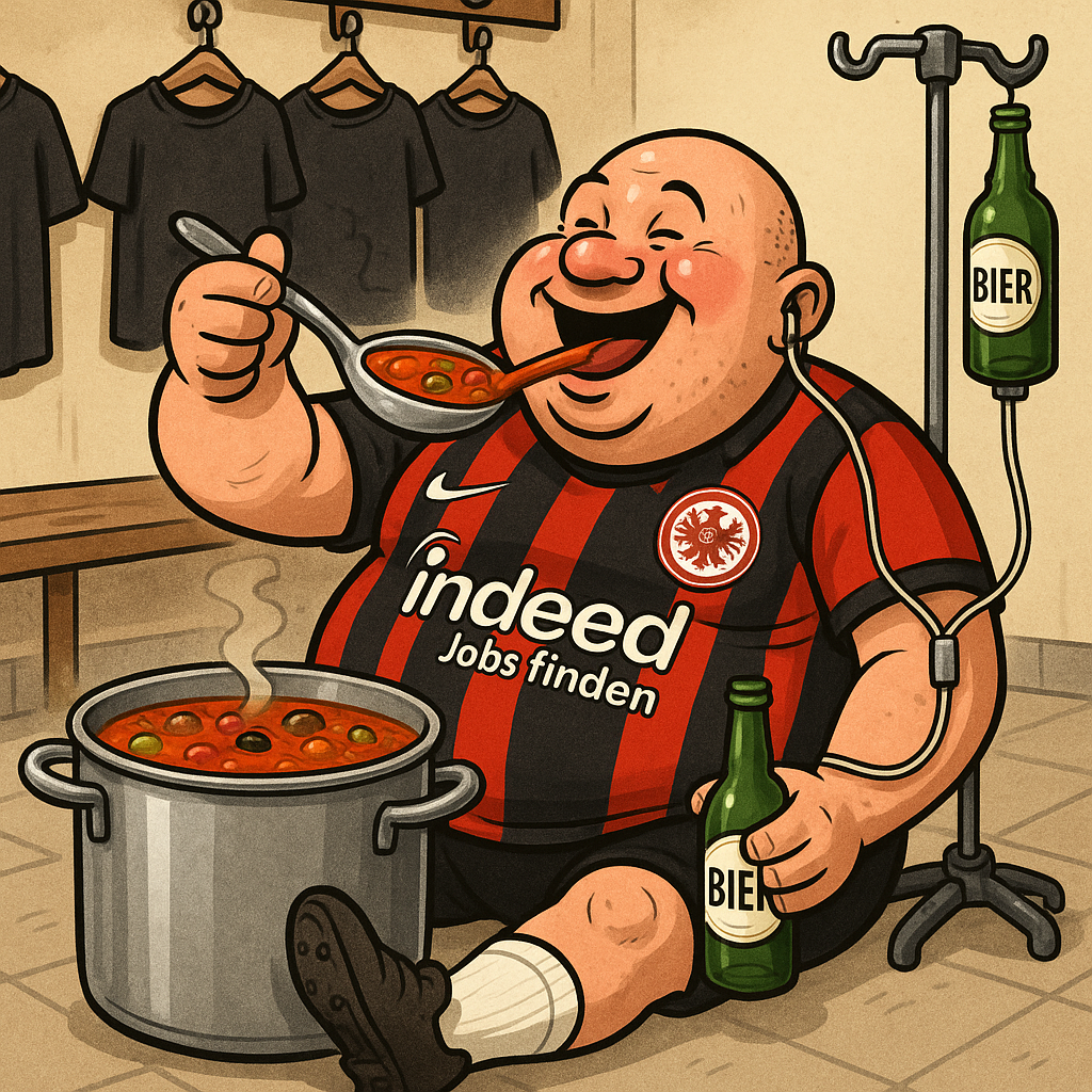 Himbi-Nils raste mal wieder über die volle Spielzeit über den Platz und schoss sich seine Füße wund. Nach Spielende setzte sich Himbi-Nils halb ausgehungert direkt in seine Suppenterrine und ließ sich Soljanka bis zum Hals stehend einschenken.