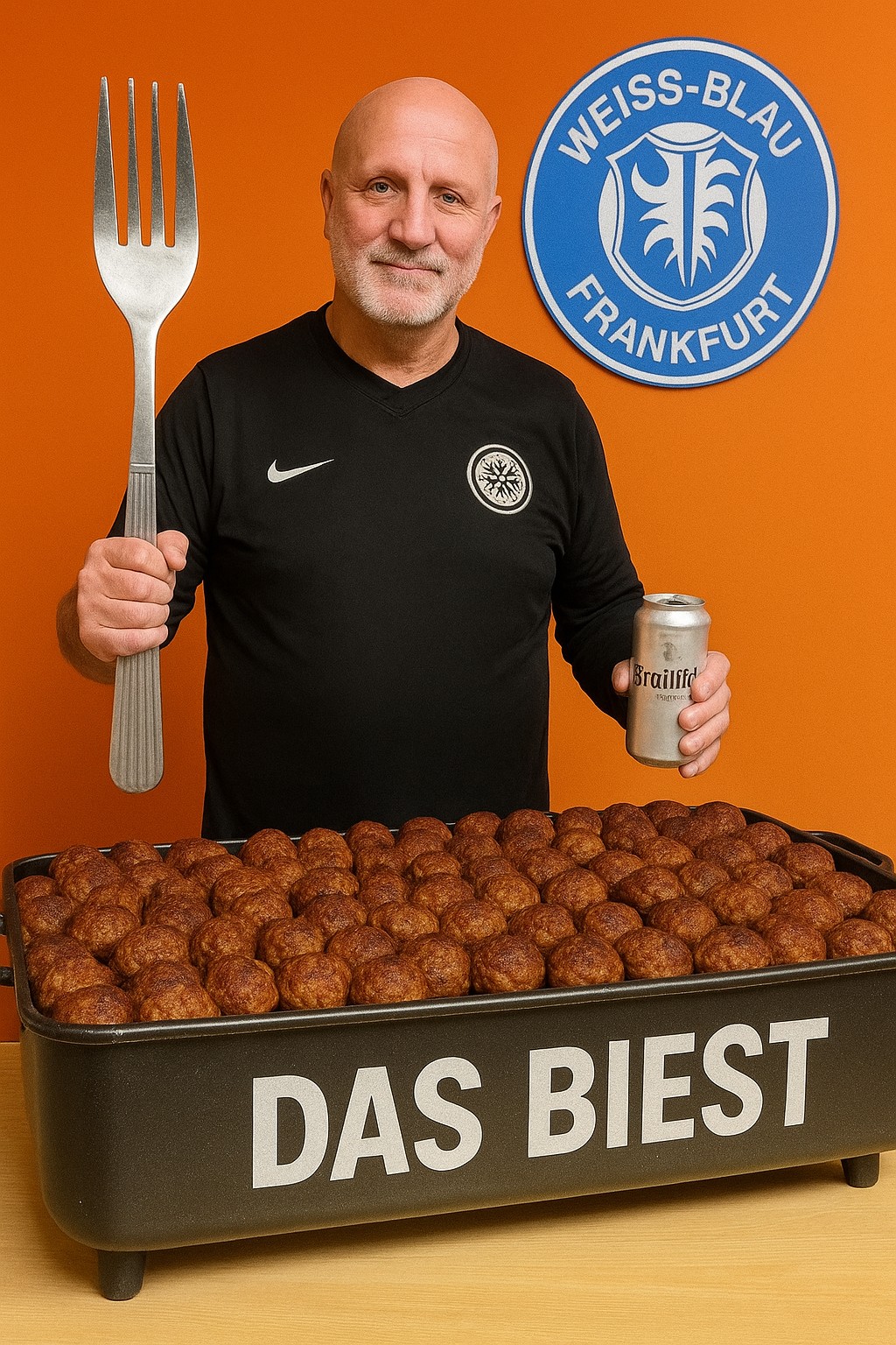 BigMike erschien mit seiner Lieblings-Utensilie, dem gusseisernen Bräter aus dem Gewölbekeller seiner sächsischen Ur-Großmutter mit 20 Liter Fassungsvermögen und nachgerüsteter Tür, genannt „das Biest“, gefüllt mit traditionell hergestellten Leipziger Bouletten aus Hackfleisch, eingeweichten Brötchen, Ei, Zwiebeln und einem Hauch von Knoblauch, der die Umkleidekabine in einen orientalisch-würzig duftenden Männerpuff verwandelte.