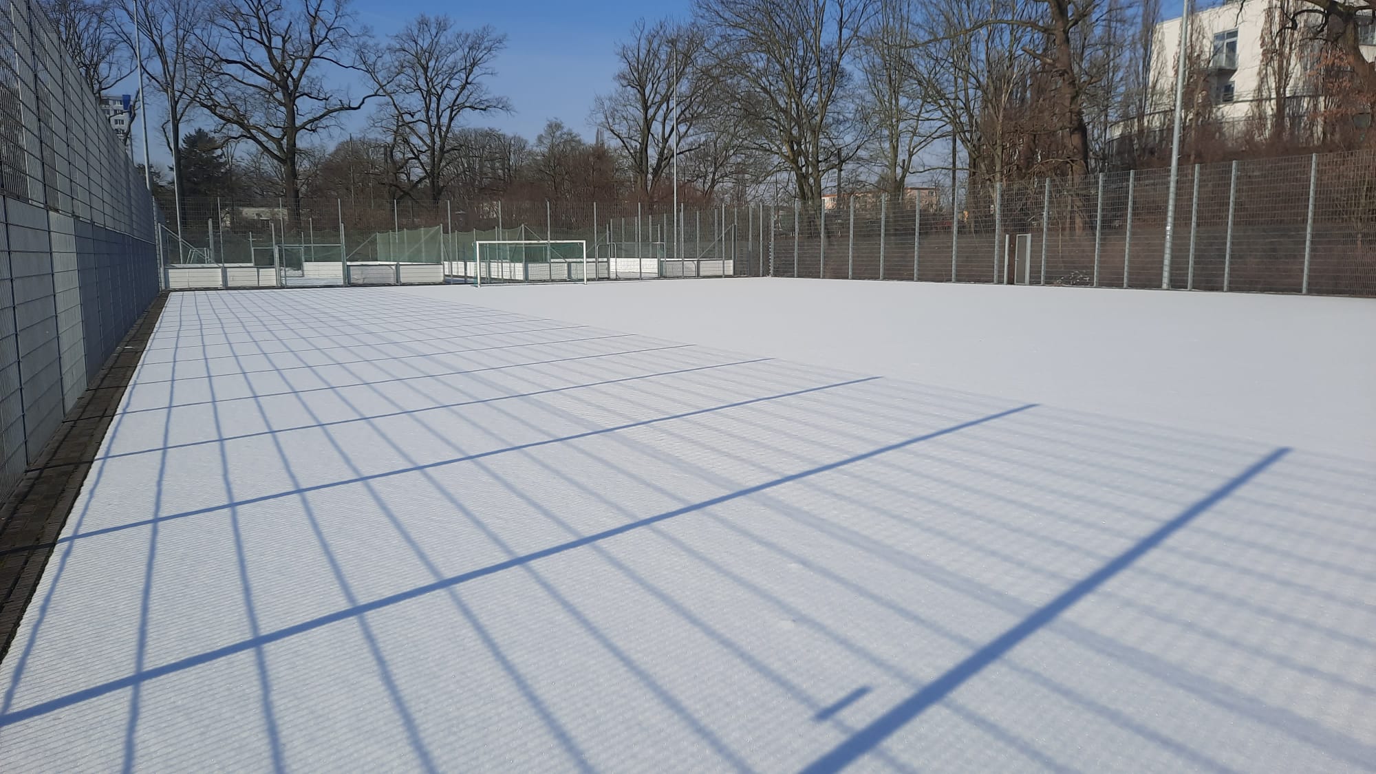 Boris Stier von Bogota freute sich riesig über den vielen Schnee auf dem Platz. Instinktiv zog er über die Linien des Platzes und befreite diese von der weißen Substanz.