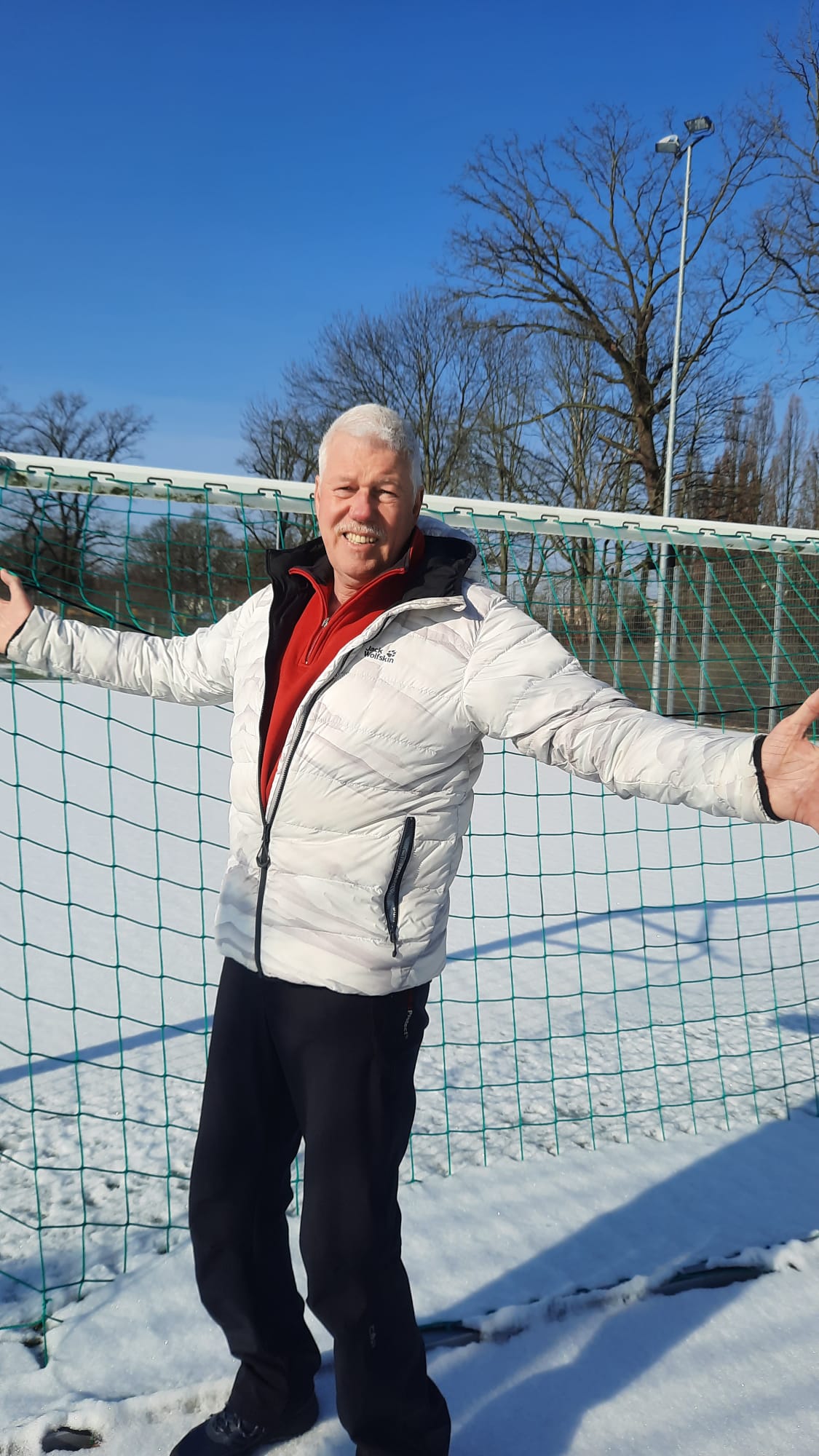 Bernd Torwartgott begutachtete bereits am frühen Nachmittag den schneebedeckten Platz und entschied sich spezielle Alpin-Schneeschuhe und wasserdichte Thermo-Torwarthandschuhe zu tragen.