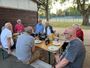 Das anschließende Beisammensein wurde gefeiert mit Fleischhäppchen von DelPiero auf dem unkaputtbaren Weber-Grill von BigMike, der bereits mehrere Millionen Würstchen damit grillen durfte, und verschiedenen Biersorten von The Urlauber, Peter Uns Overath und TomTom.