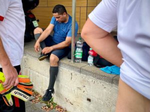 Piero konnte wegen einer leichten Muskelzerrung leider nicht durchspielen und musste den Rest der Spielzeit seine Verletzung mit einem eiskalten Bierchen kühlen.