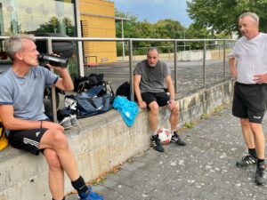 Feines, ruhiges Fußballspiel unter bewölktem Himmel und lauen sommerlichen Temperaturen. In der Ferne ertönte im ständigen Rhythmus das summende Geräusch der ausgefahrenen Landeklappen der sich im Landeanflug befindlichen Flugzeuge. Einzig auf dem Fußballplatz wurde diese Ruhe unterbrochen durch Bernds klare Ansagen mit leichter Tendenz eines nahenden Kontrollverlustes: „Näher ran, geht drauf, ihr müsst sie stören, Fuß davor, ihr müsst früher drauf, lasst sie nicht schießen, mannnnnooooo“.
