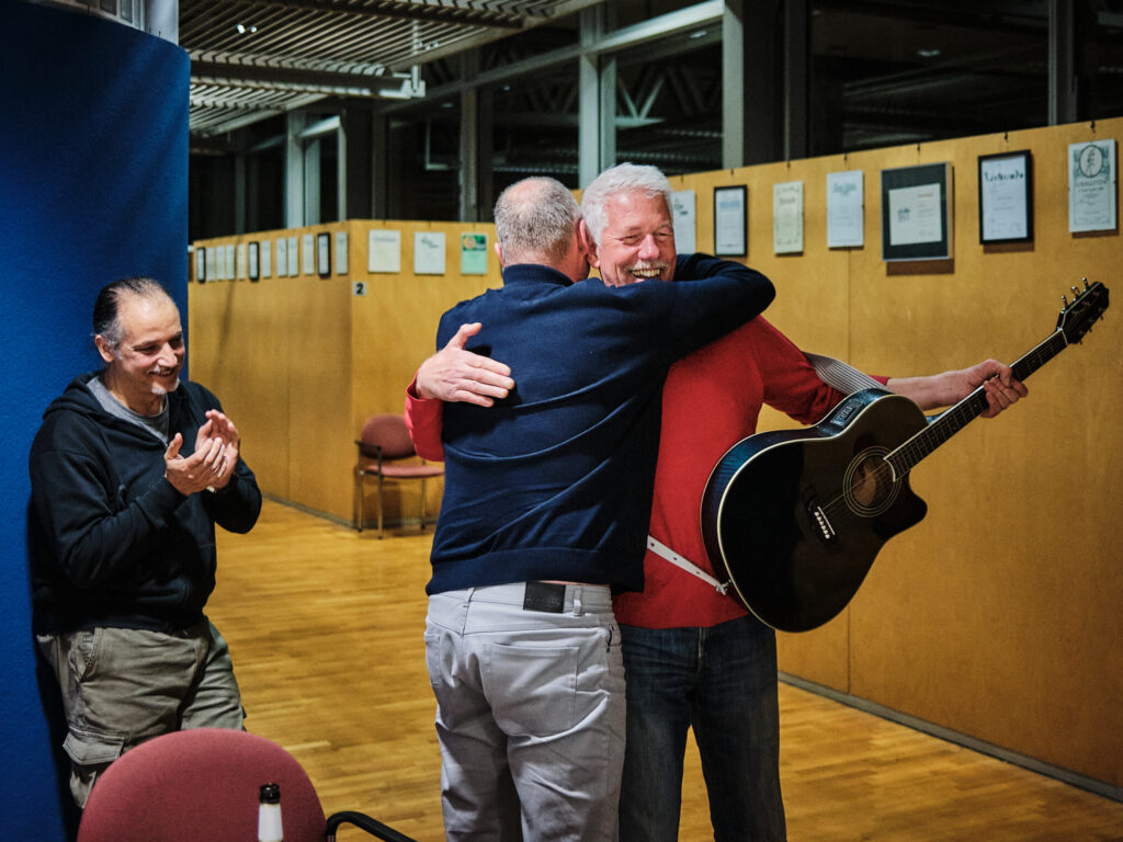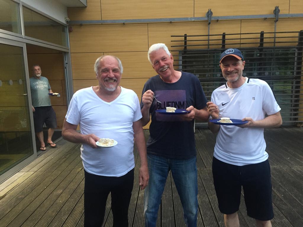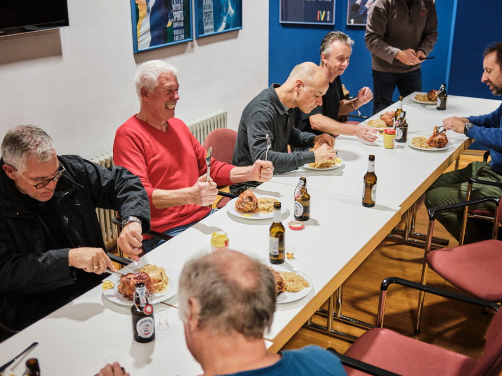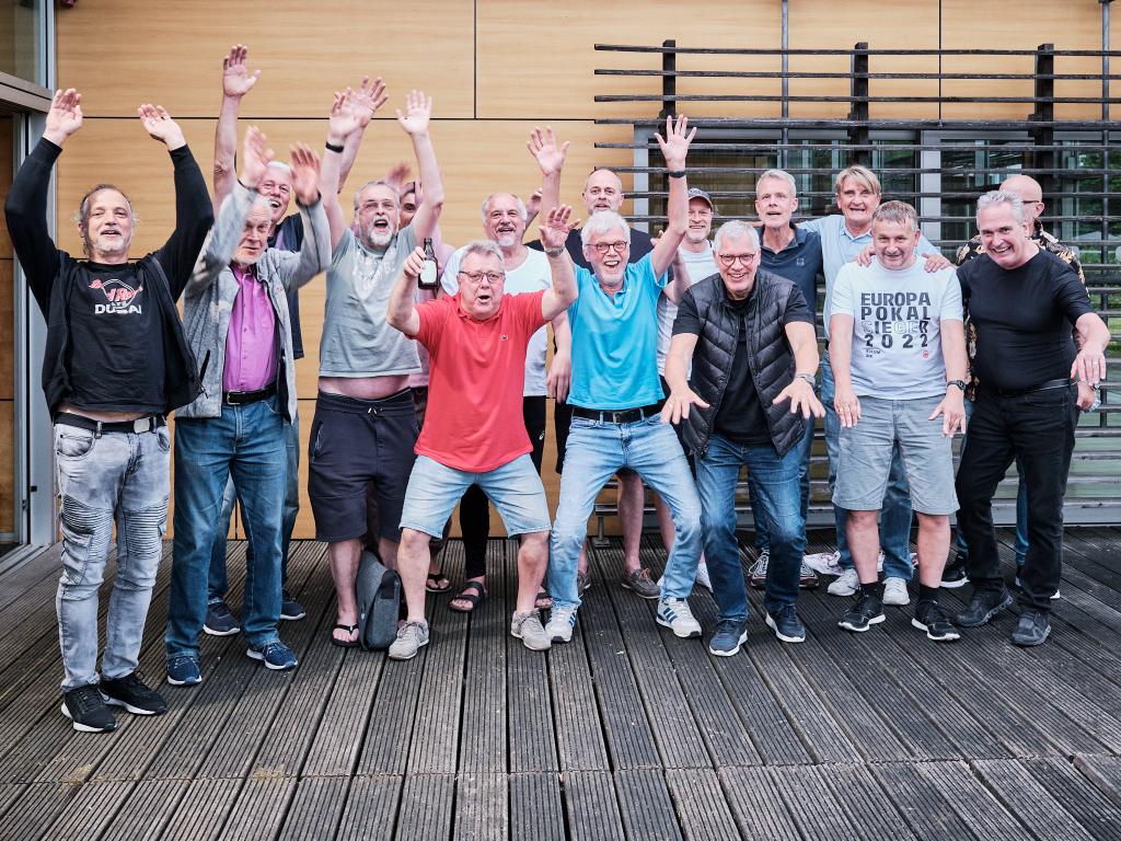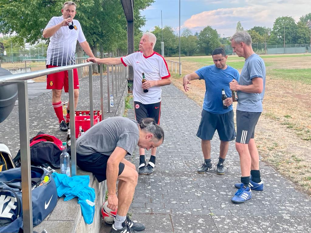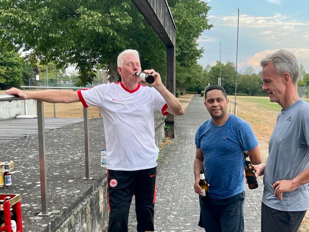 Neben dem Platz begeistert Bernd uns auf seiner Gitarre mit seinem selbst getexteten Liedgut von vielen bekannten Klassikern. Spätestens jedoch, wenn die Freitagskicker zum gemeinsamen Essen an der großen Tafel vor dem großen Lagerfeuer gerufen werden und unser Druide Bernd partout nicht mit seinem Gesang enden will, wird er samt seiner Harfe am nächsten Baum gefesselt.