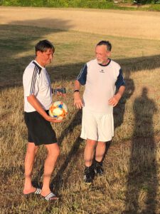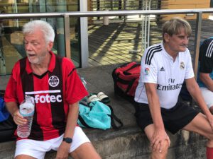 Frank sticht in der tristen Winterhalle, erhellt von Neonlicht und mit Schweiß getränkter Luft von Pennälern und Allianz-Kickern, nicht nur wegen seines Teints heraus, sondern wegen seiner hervorragend herausgespielten Tore. So eröffnet er nun bereits zum zweiten Mal hintereinander die Wintersaison mit dem ersten Tor. Absoluter Carl-Schurz-Hallenrekord. Woher er zudem die Kraft und Ausdauern für die komplette Saison nimmt, ist allen Spielern ein Rätsel. Trainiert er vielleicht heimlich in seiner ganzjährig währenden Urlaubszeit oder in seinem zusätzlichen Sonderurlaub? Man sagt, er sei beobachtet worden, wie er sich in der niederrädchen Allianzarena durch nächtliches Lauftraining fit hält. In der Sommersaison steht Frank in der Abwehr wie „ein Fels in der Brandung“. Sein Eröffnungsspiel, seinen Blick für den freien Raum und das Zuspiel sind ein Träumchen. Vergleiche mit Kaiser-Franz sind nicht weit hergeholt. Wenn er es nun auch schaffen würde, ausschließlich eigene Mitspieler anzuspielen – perfekt.