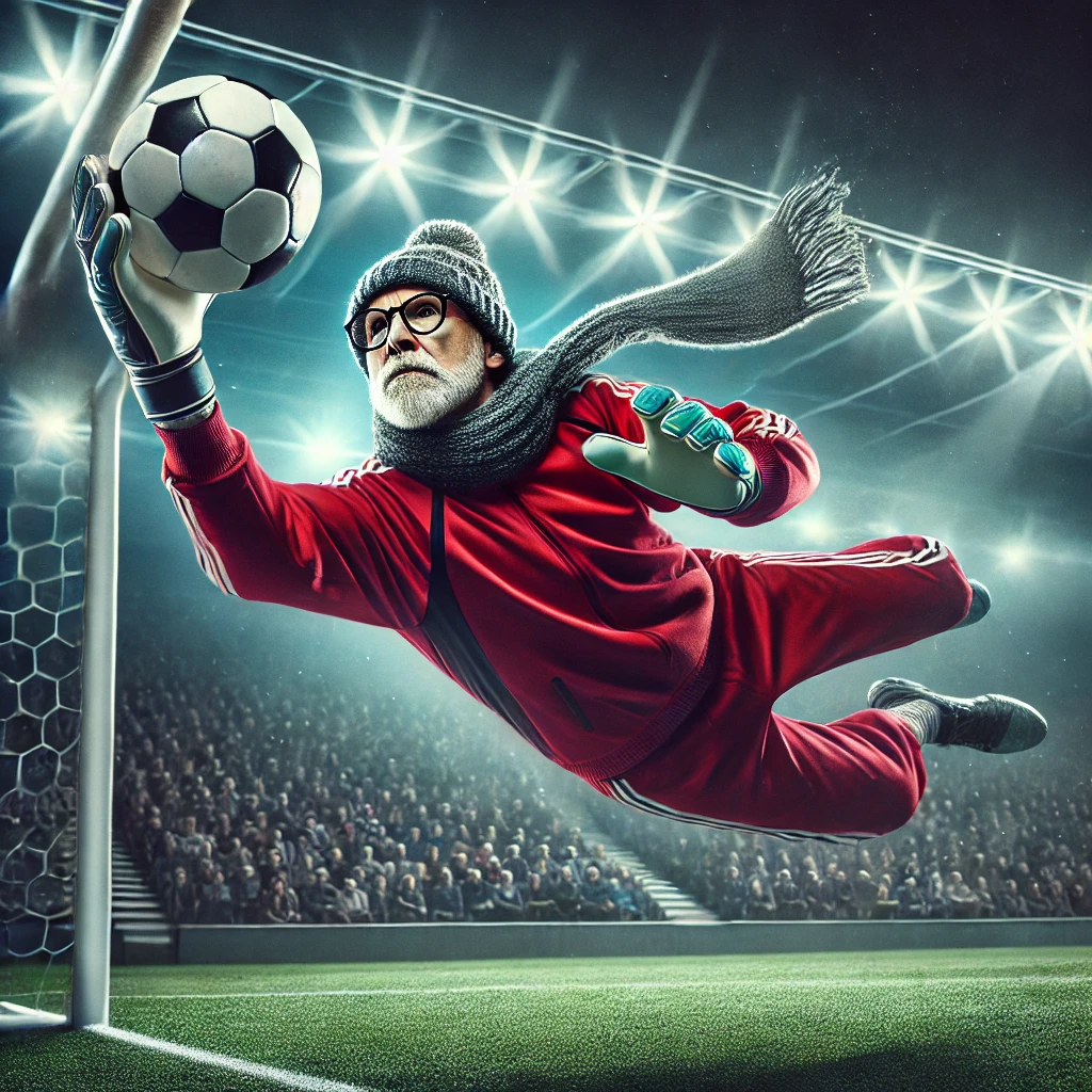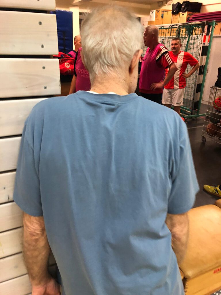 Understatement: Kurze, rote Hose, sehr gepflegtes weiß-graues T-Shirt von 1979, immer ohne Schienbeinschoner. Neuerdings im roten Torwart-Ganzkörperanzug mit übergroßen Torwarthandschuhen und Pudelmütze bei unter 20 Grad Aussentemperatur.